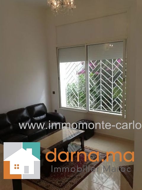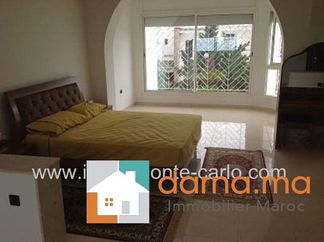 Villa moderne et meublée au quartier Hay Riad avec un jardin clôturé, climatisation réversible dans toutes les pièces, composée d’une réception lumineuse avec terrasse donnant sur le jardin, coin cheminée, séjour, salle d’eau des invités, cuisine équipée moderne, buanderie, 3 chambres dont une suite parental avec dressing et salle de bain et 2 chambres enfants avec salle de bain, débarras, buanderie, logement de personnel, garage … . Pour plus d’informations ou visite n’hésitez pas de contacter notre agence immobilière Immo Monte-Carlo au N° de tél: +212661464037/ +212661212547ou Tél/Fax: +212537755043 ou par E-mail : Cette adresse e-mail est protégée contre les robots spammeurs. Vous devez activer le JavaScript pour la visualiser. ou visitez notre site www.immomonte-carlo.com ou rendez-vous au 15. Av , Al Abtal N°4, Agdal RABAT MAROC.