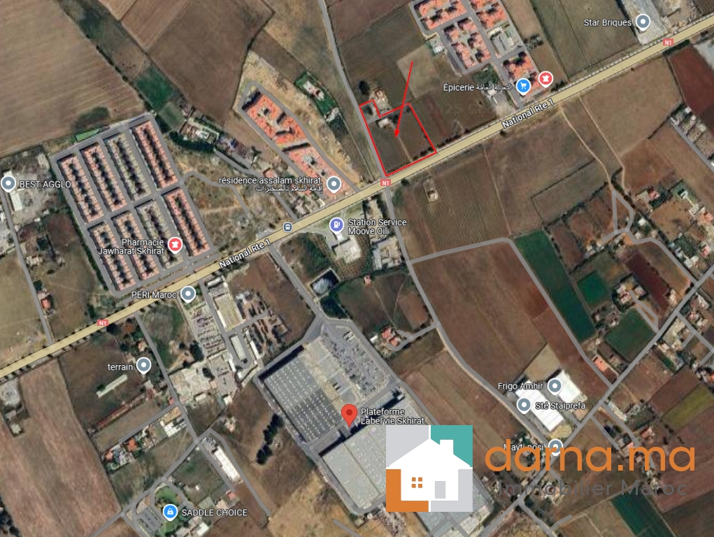 Emplacement stratégique à proximité de la Plateforme LabelVie Skhirat sur la route nationale N1 Skhirat Bouznika