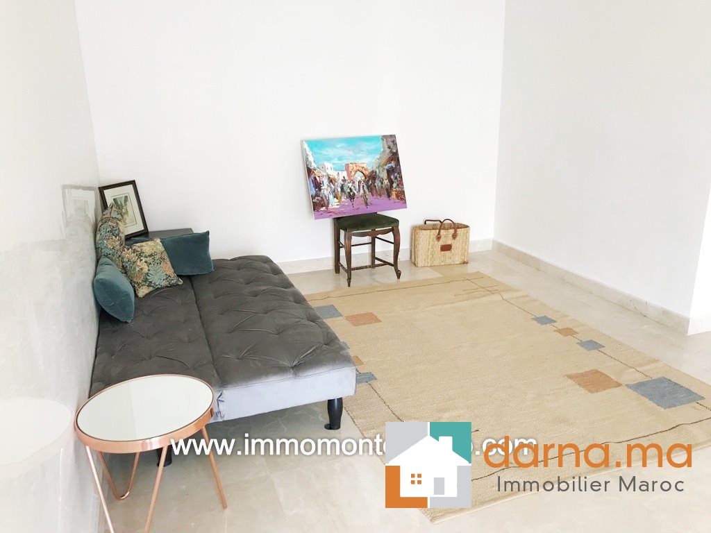 Appartement meublé à louer Hay Riad à Prestigia Ryad Al Andaloussitué dans une résidence avec piscine, résidence fermée sécurisée et proche de toutes commodités, offrent d’excellentes prestations, au dernier étage avec ascenseur ainsi une place dans le garage, une climatisation centralisé dans la réception et dans chaque chambre une climatisation réversible.