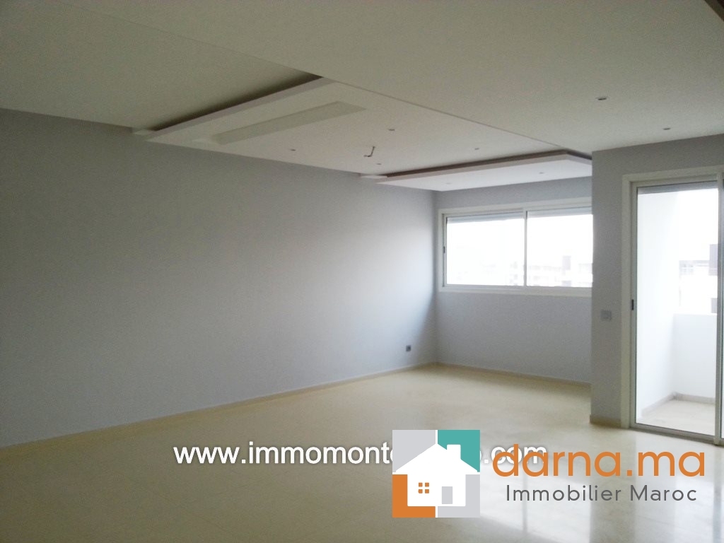 A louer à Prestigia Hay Riad appartement de haut standing et neuf. Jamais habité, 3ème étage, double exposition dont plein sud et sans vis-à-vis. 2 ascenseurs, place de parking couverte dans garage dans une résidence sécurisée 24H/24. Il se compose de 3 chambres, 2 salles de bain, grande réception avec terrasse, cuisine équipée et buanderie,
