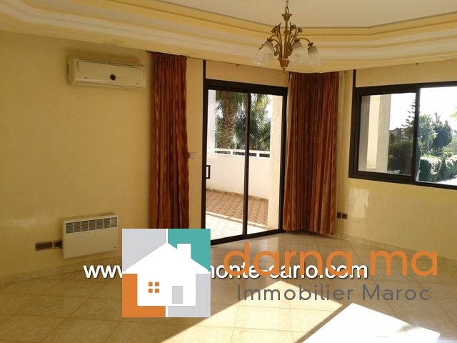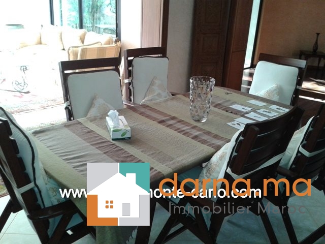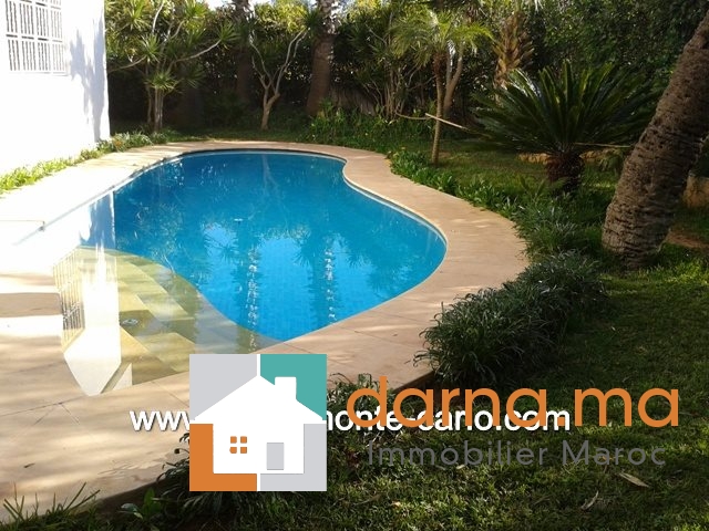À louer villa moderne 5 étoiles meublée avec piscine chauffée dans un jardin clôturé, paysager. Superbe vue sur la piscine. Terrasses autour de la piscine avec mobilier en teck, barbecue,construite sur 3 niveaux et composée de: Rez de chaussée spacieux et lumineux avec terrasse donnant sur la piscine et le jardin, comprenant triple salons, coin cheminée, séjour, WC des invités, cuisine neuve équipée moderne, buanderie, cour. Étage: suite parental avec dressing, salle de bain et grande terrasse, 3 chambres à coucher chacune avec sa salle de bain et dressing et terrasse privée, Sous-sol : salon, douche, WC, chambre, débarras,buanderie, logement de personnel ….