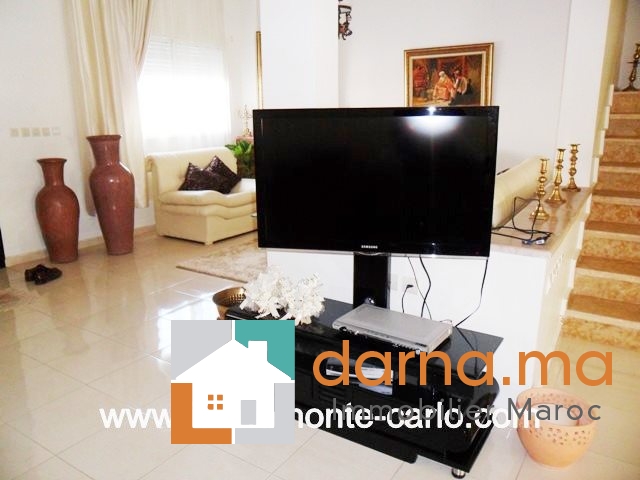 A louer Harhoura Plage villa très bien meublée avec chauffages et climatiseurs dans un quartier chique et sécurisé de Sable d’or sur 2 niveaux comprenant une suite parentale avec dressing et salle de bain, 4 chambres à coucher avec salles de bain, terrasse, double salons avec un coin cheminée, une salle à manger, salle d’eau des invités, une cuisine bien équipée, cuisine secondaire,une terrasse donnant sur la plage, logement de personnel, douche, avec un jardin et garage.