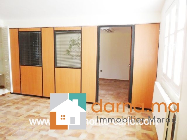Location villa à usage bureau Souissi Rabat sur une grande avenue, avecchauffage central et climatisation, construite sur 3 niveaux comprenant triple salons, séjour, salle d’eau, 1chambre avec salle de bain, une cuisine, buanderie. A l’étage ; un chambre parental avec dressing et salle de bain et 4chambres avec 3salles de bain, terrasse et balcons. Sous-sol : 2chambres avec salle de bain, salle d’eau, 2salons, débarras. Villa propre en bon état, ensoleillée et proche de toutes commodités avec jardin et grand garage et logement de gardien,…….