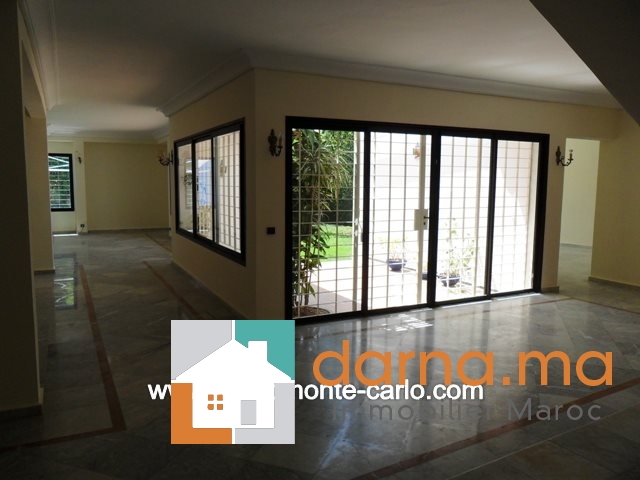 Villa à louer avec piscine et chauffage à Rabat hay riad, climatisation réversible, villa entourée d’un beau jardin avec piscine et puit, composée de triple salons avec deux coins cheminés, bureau, WC des invités, séjour, 6chambres, 5salles de bain, dressing, placards, terrasses, balcons, une cuisine aménagée et équipée , buanderie, logement de personnel