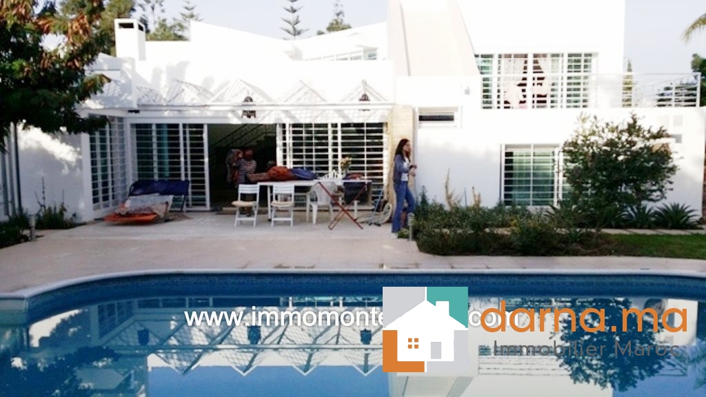 À louer à Rabat villa moderne avec piscine, proche de toutes commodités, très bien située et bien sécurisée. Villa entourée d'un jardin avec puits, garage, logement de gardien, construite sur 2niveaux et composée de: