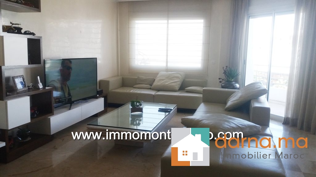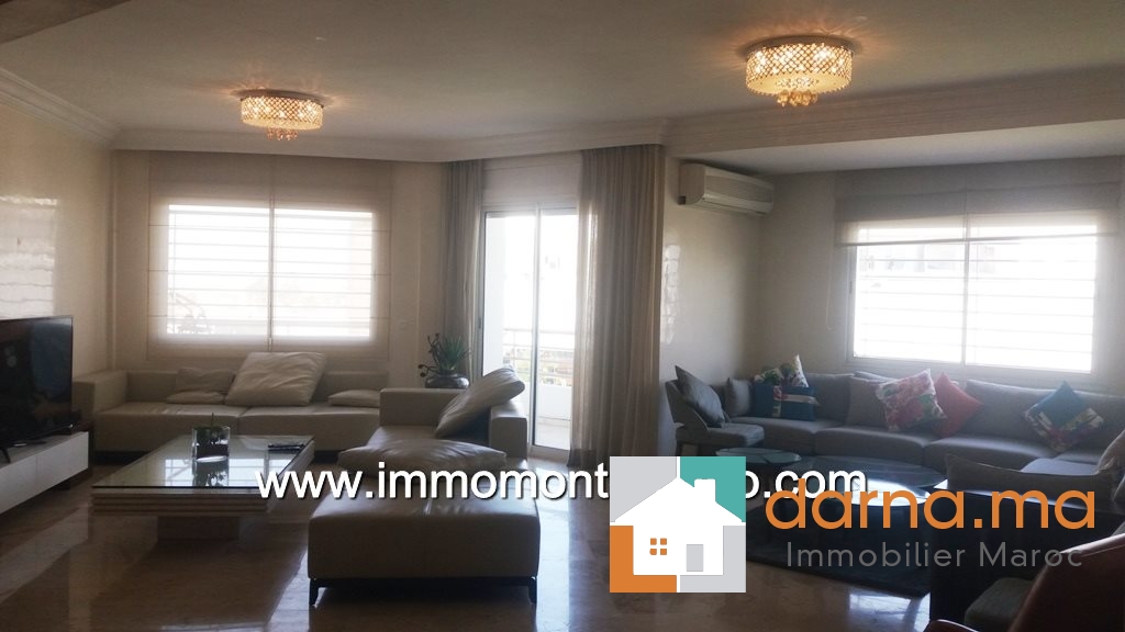 Location appartement meublé au centre deHay Riad Rabat, appartement ensoleillée entièrement et totalement meublé avec goût style européen, située au dernier étage dans un immeuble avec ascenseur et garage. L’appartement se compose de: