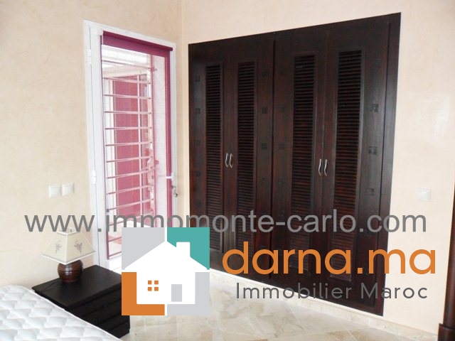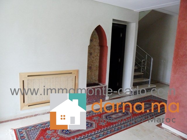 salons avec un coin cheminée, salle à manger, une grande chambre, 2 WC, une cuisine Location villa neuf avec chauffage central et piscine sur la route de Zaers à Rabat, entourée d’un joli jardin avec piscine, construite sur trois niveaux comprenant chambre parental avec SDB et dressing, 2 chambres à coucher avec placards, salle de bain, terrasse et balcon, , box garage et logement de gardien…Pour plus d’informations ou visite n’hésitez pas de contacter notre agence immobilière Immo Monte-Carlo au N° de tél: +212661464037/ +212661212547ou Tél/Fax: +212537755043 ou par E-mail : Cette adresse e-mail est protégée contre les robots spammeurs. Vous devez activer le JavaScript pour la visualiser. ou visitez notre site www.immomonte-carlo.com ou rendez-vous au 15. Av, Al Abtal N°4, Agdal Rabat .