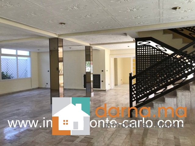 Location villa bureau au quartier Souissi Rabat, Bien situé dans un endroit calme et proche de toutes les commodités, avec climatisation réversible et chauffage central, comprenant grande réception, salle de réunion, une grande salle,2 salons, des salles d’eau, plusieurs bureaux, et des annexes à l’extérieur, grand garage pour plusieurs voitures, jardin avec puits, logement de gardien,…….Pour plus d’informations ou visite n’hésitez pas de contacter notre agence immobilière Immo Monte-Carlo au N° de tél: +212661464037/ +212661212547ou Tél/Fax: +212537755043 ou par E-mail : Cette adresse e-mail est protégée contre les robots spammeurs. Vous devez activer le JavaScript pour la visualiser. ou visitez notre site www.immomonte-carlo.com ou rendez-vous au 15. Av, Al Abtal N°4, Agdal RABAT MAROC.